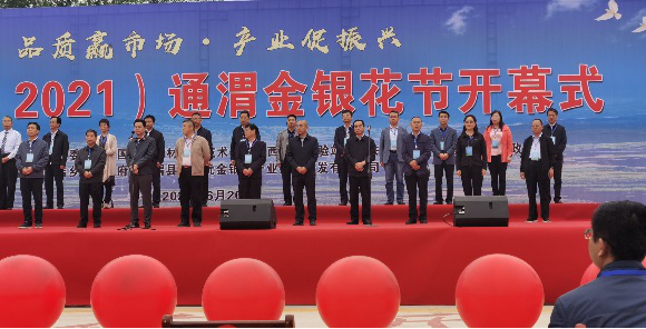 6月20日上午,由通渭县委和县政府主办的第四届(2021)通渭金银花节开幕式在通渭县李家店乡姚川村隆重举行,唱响了“品质赢市场 产业促振兴”主题曲。来自全国十余个省市的200多位专家学者、中医药企业代表、新闻媒体及当地农村局干部、通渭县清凉沅公司职工及广大村民共同参加此次盛会。伟德国际betvlctor1946伍国强经理、武军莉副书记、杨明俊副经理和蒲秀瑛教授应邀出席了本次会议。