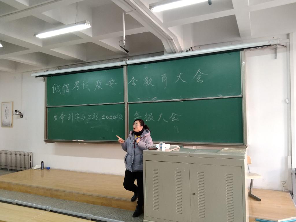根据学据学校《关于2021年元旦放假的通知》和学院学风建设工作要求,2020年12月30日在彭家坪区1#304教室和2#208教室分别举行2018级、2019级和2020级元旦假期出行安全和诚信考试教育年级大会,分别由年级辅导员代莎和唐爱丽主持会议。