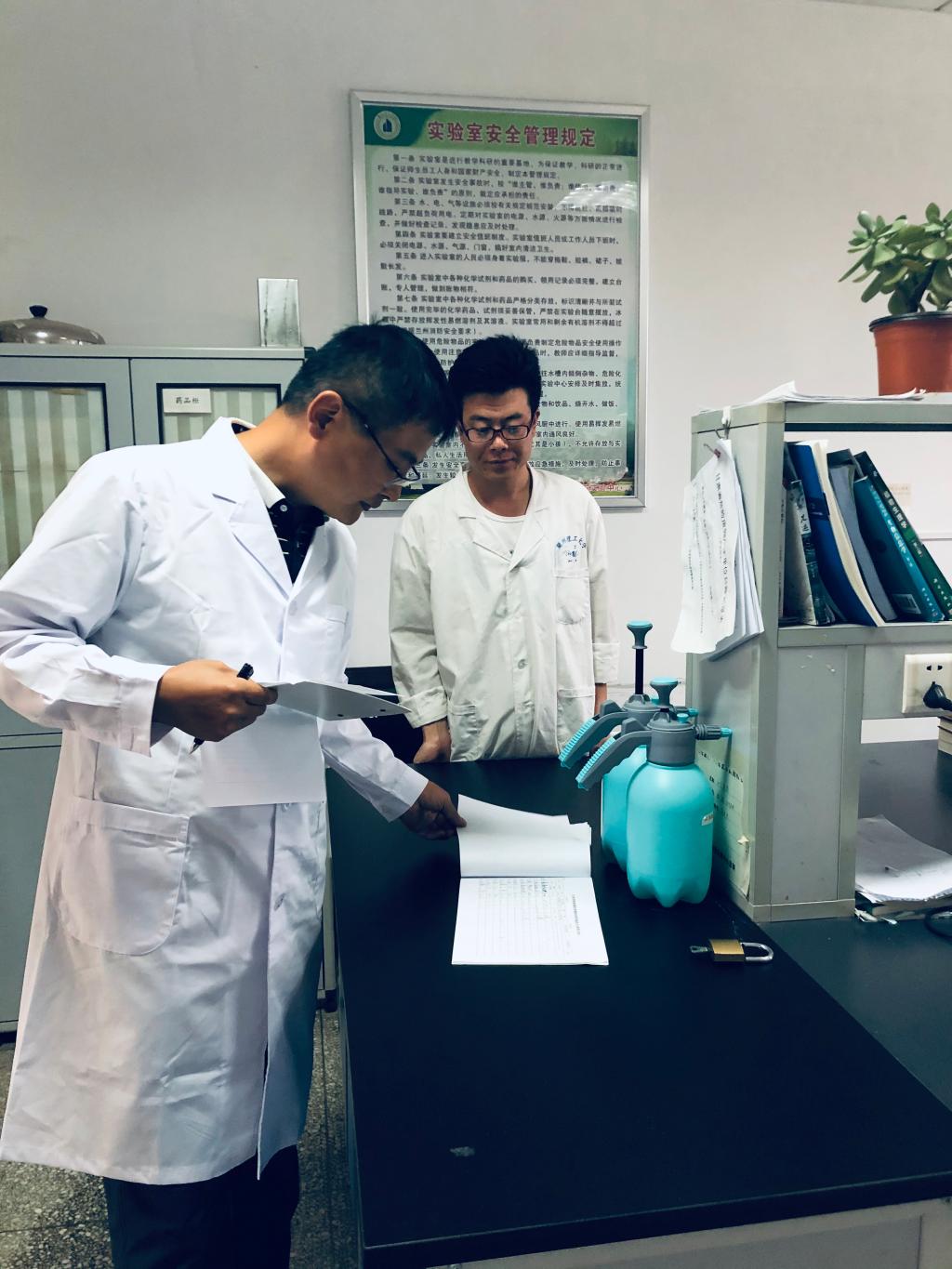 检查过程中,陈永泰书记详细询问了各验室安全自查、人员管控、疫情防控等情况,并就相关工作提出要求,无论是员工返校前的实验室安全自查工作,还是员工返校后的实验室安全防控工作,都要压实责任、抓细抓实;对安全隐患要进一步排查,认真处理,确保安全无死角,保障学院2020年秋季实验课程顺利开展。